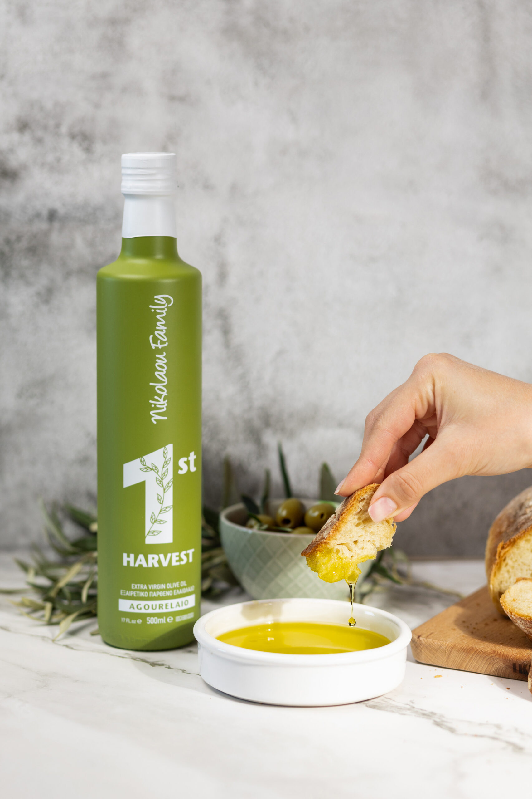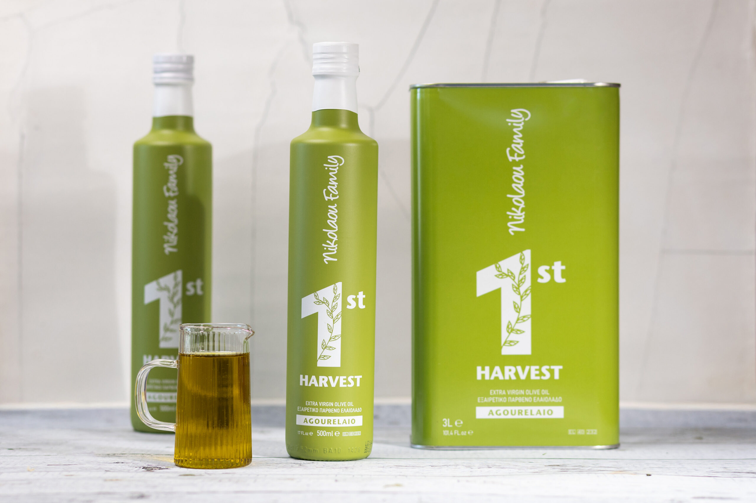 Tο «AGOURELAIO» της Nikolaou Family παράγεται αμέσως μετά την συγκομιδή του φρέσκου καρπού, στις αρχές Οκτωβρίου (πρωτόλαδο) είναι πολυποικιλιακό. Παράγεται σε χαμηλή θερμοκρασία (εξαγωγή εν ψυχρώ) με υπερσύγχρονο μηχανολογικό εξοπλισμό που συμβάλει στη διατήρηση της φρεσκάδας του καρπού της ελιάς. Απογείωση της γεύσης και του αρώματος, διατήρηση των φυσικών βιταμινών και των πολυφαινόλων.